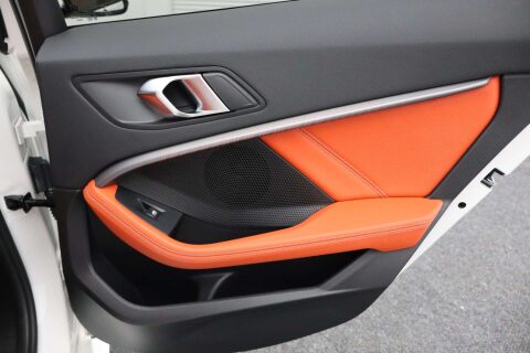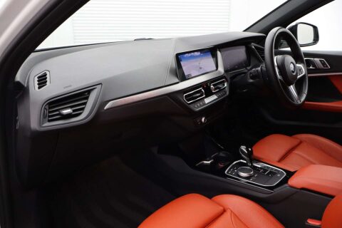 Finished in a pristine Alpine White, the BMW 1 Series exudes elegance and style, turning heads wherever it goes. Step inside to discover the luxurious interior, featuring Perforated Dakota Leather in a striking Magma Red with Grey Highlight – a perfect blend of comfort and flair.